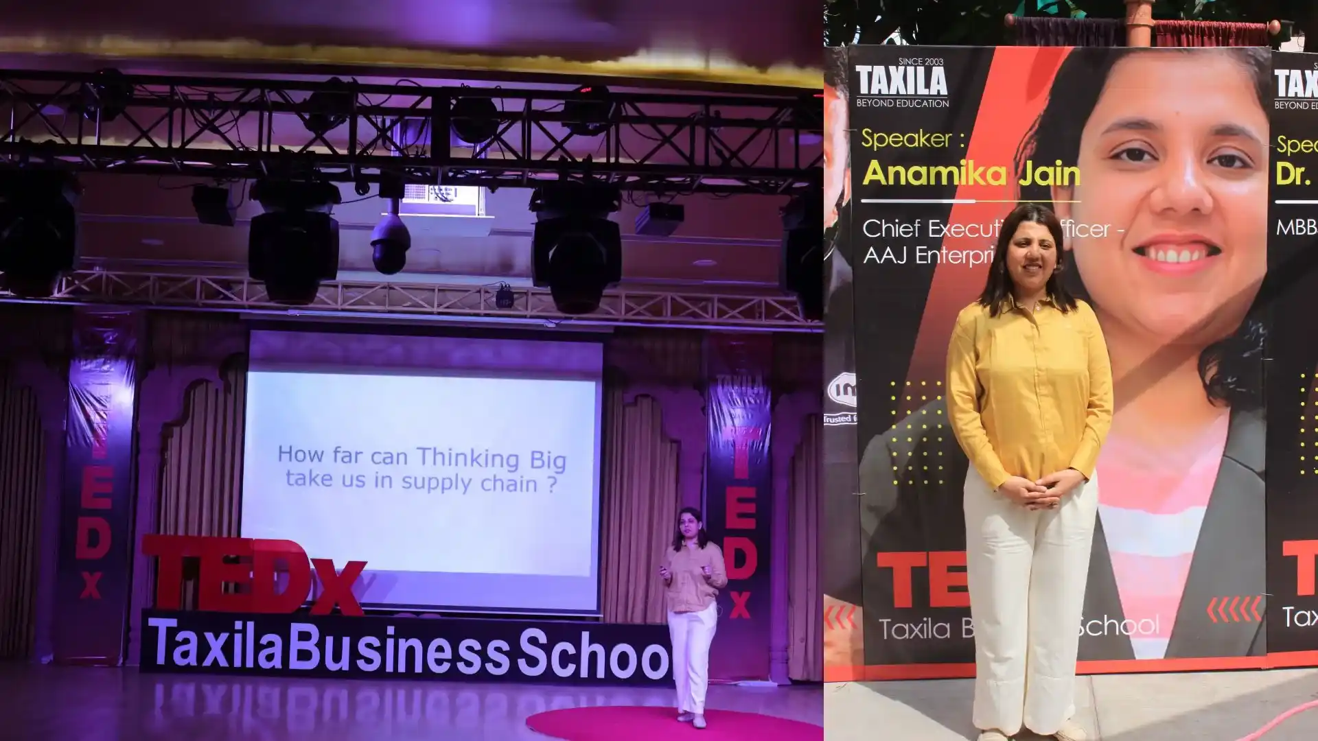 Anamika Jain, CEO of AAJ Enterprises, recently spoke at a TEDx event organized by Taxila Business School. Her insightful talk focused on the transformative power of thinking big within the realm of supply chain management, inspiring peers and industry professionals. Anamika shared valuable lessons on effective leadership and the essential traits required to succeed in warehousing and logistics dynamic field.